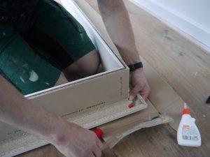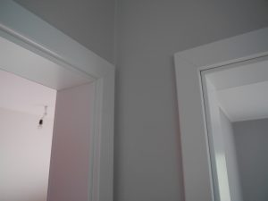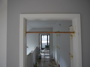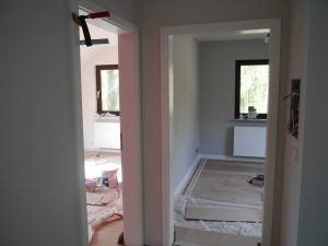 Ich bin ein bisschen krank, sitze auf dem Sofa (natürlich ist draußen das beste Wetter) und habe in den Fotos gestöbert. Da fiel mir auf, dass ich noch gar nichts zu den Türzagen und Fußleisten geschrieben habe. Wir haben uns für ganz einfache Fußleisten entschieden, die wir in Wohn- und Essbereich in Wandfarbe lackieren ließen. Auch oben im Bad und im Flur strahlen die Fußleisten dezent in Wandfarbe. In Julis Zimmer und dem kleineren Zimmer daneben sind sie weiß geblieben, was auch gut aussieht, da die Türzagen (und die neuen Türen) ebenfalls weiß sind. Die Zagen haben wir bei HolzLandKlatt gekauft und wir haben sie selbst zusammen- und eingebaut. Das ist keine große Sache und man kann es wirklich gut selbst machen. Dennoch ist es nicht ganz leicht, die Gehrung perfekt aneinander zu bringen, da man beim zusammenbauen nicht den Teil sieht, der später als Türrahmen sichtbar ist. Ich hab mal Schritt-für-Schritt-Bilder in die Galerie gepackt, vielleicht hilft es dem ein oder anderen. Wir sind mit dem Ergebnis dennoch sehr zufrieden, es sieht gleich alles viel fertiger aus. Die Türen werden wir auch bald einhängen, die Beschläge sind auch schon da. Zeige ich Euch bald! Jetzt koche ich mir erstmal noch nen leckeren Salbeitee…. grrr.