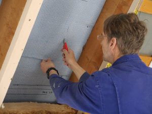 Zuerst haben wir die Dachfolie aufgeschnitten und die Dachsteine entfernt. Als wir dann die Dachlatten durchgesägt hatten und durch die Ausschnitte in den Himmel schauen konnten, war die Vorfreude auf die beiden Fenster schon riesig! Wir haben brav nach der Anleitung gearbeitet: Dämmrahmen, Fenster, Fenster ausrichten, Schürze anbringen und dann das Dach wieder decken (hier kamen wir nicht drum rum, einige Dachsteine neu zuschneiden zu müssen).