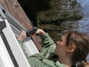 Lange ließ er in diesem Jahr auf sich warten, der Frühling. Letzte Woche zu Ostern hatte es bei uns noch geschneit und dann waren plötzlich Sonne und Temperaturen um die 20°C angesagt! Statt sofort die Sachen zu packen und an die Ostsee zu fahren, haben wir am Freitag ein Gerüst im Studio aufgebaut und uns auf die Aktion Dachfenstereinbau vorbereitet. Die Velux-Fenster hatten wir schon ein paar Wochen vorher bestellt und sie warteten (wie wir) auf das passende Wetter. Thomas hat schon einige Dachfenster selbst eingebaut, daher waren wir zuversichtlich, dass wir das zusammen hinbekommen. Auf der Velux-Website gibts übrigens auch ein Video dazu und die Anleitungen, die den Fenstern beiliegen, sind auch ganz gut. Ich wäre allein trotzdem das ein oder andere Mal aufgeschmissen gewesen…